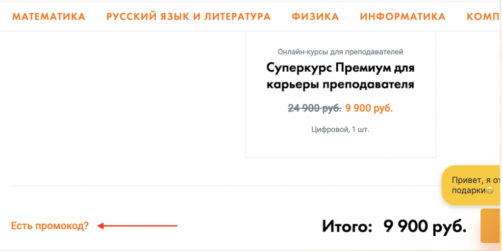 2. Нажмите кнопку "Есть промокод?"